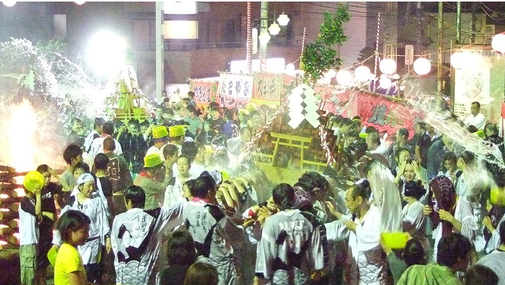 温泉の「湯」が入った1,000個の樽と湯桶約5,000個が用意され、約60tものお湯を観客が神輿めがけて勢いよく浴びせる豪快なお祭りです。