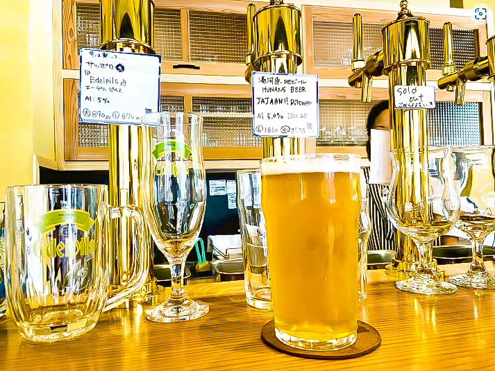 湯河原温泉街にある「ビールスタンド かどや」は、地ビールや伊勢角屋麦酒の限定クラフトビールを楽しめるバーです。