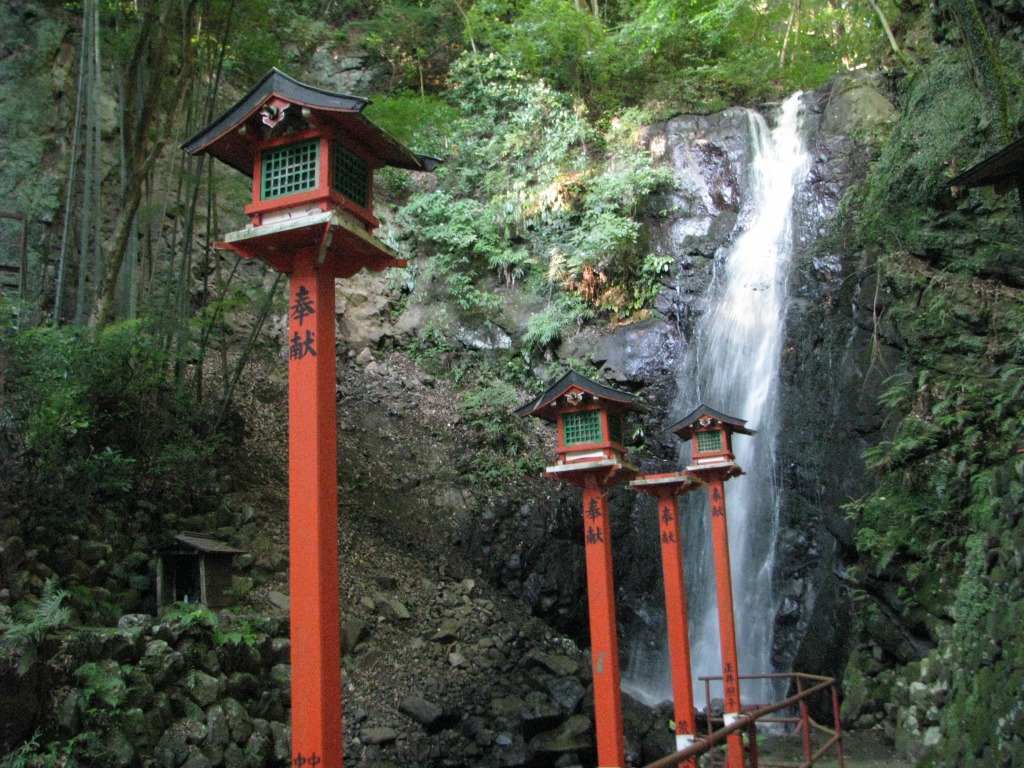滝の左側には身代わり不動尊、右側には出世大黒尊があり、