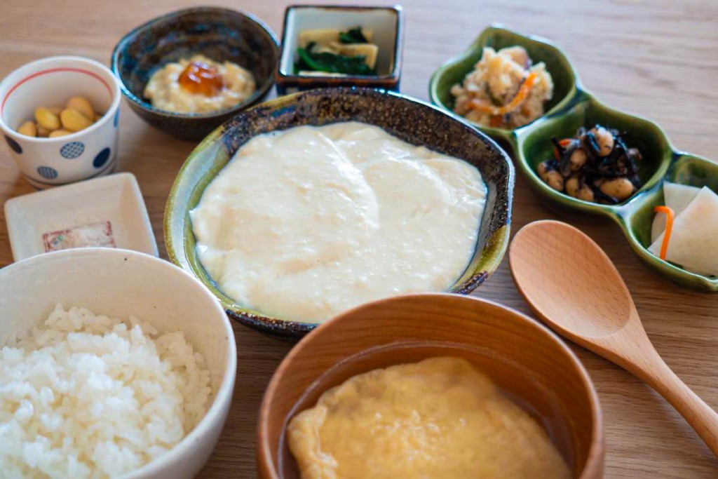 生豆腐定食、納豆汁定食、焼きいなりネギ味噌定食