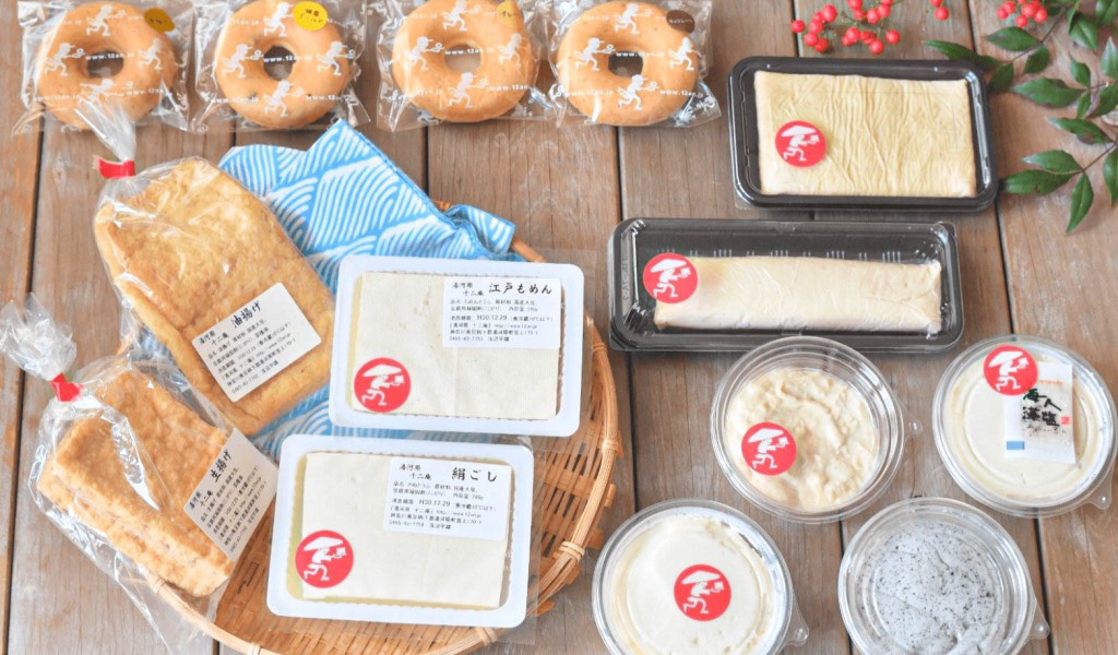 絹ごし豆腐、木綿豆腐、寄せ豆腐、生湯葉、豆腐ドーナツなど
