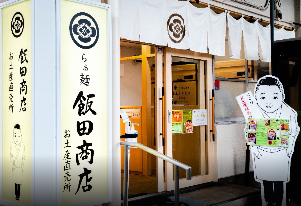 湯河原駅改札を出てすぐ左手に、有名ラーメン店「飯田商店」のお土産ショップがあります。