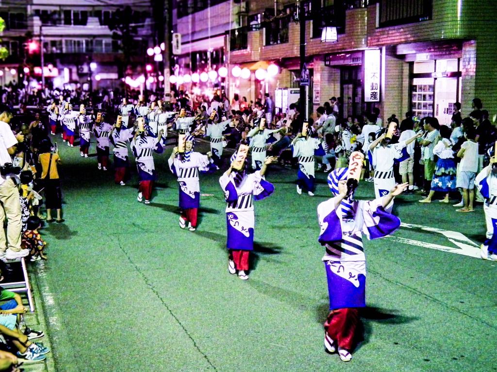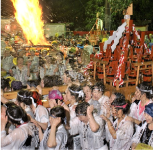 色とりどりの浴衣を着て一糸乱れぬ阿吽の呼吸で踊る芸妓たちや、華やかな装飾が美しい花車、猛々しい掛け声とともに練り歩く神輿など、湯河原が誇る見所たっぷりの名物祭りです。